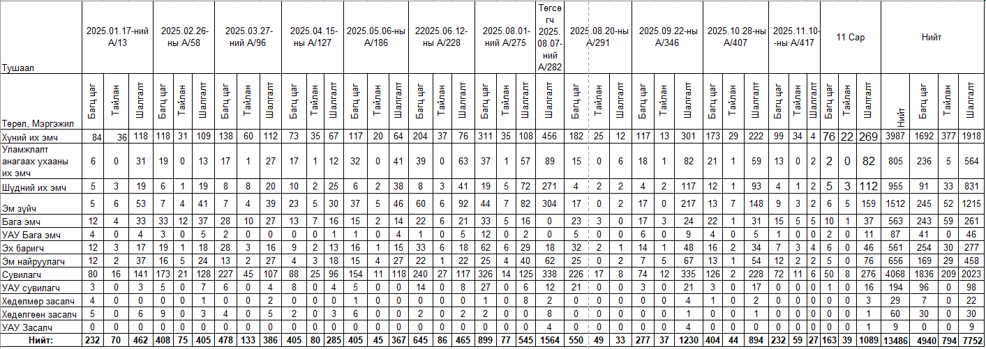 Мэргэжлийн үйл ажиллагаа эрхлэх зөвшөөрөл сунгасан эмнэлгийн мэргэжилтний мэдээлэл - 2025 оны 1 дүгээр сар