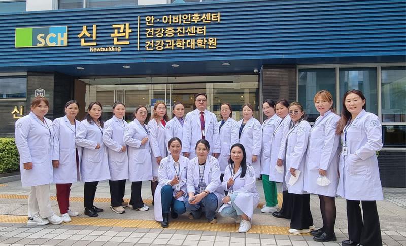 2023/10/17Сувилахуйн тусламж үйлчилгээ үзүүлдэг мэргэжилтний чадавхийг дээшлүүлэх, сувилахуйн тусламж үйлчилгээний чанар, аюулгүй байдлыг сайжруулах зорилгоор 5 хоног БНСУ-ын "Soonchunhyang University Hospital" эмнэлэгт туршлага судлахаар явсан 9 аймгийн 17 эх баригч, сувилагчаас бүрдсэн баг суралцаж байна.