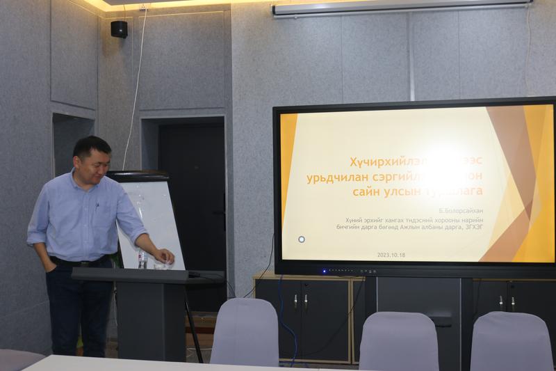 Ёс зүйн тэмдэглэлт өдрийн хүрээнд Хүний эрхийг хангах Үндэсний хорооны нарийн бичгийн дарга бөгөөд Ажлын албаны дарга Б.Болорсайханыг урьж, “Хүчирхийлэл, түүнээс урьдчилан сэргийлэх олон улсын сайн туршлага” сэдвээр сургалт зохион байгууллаа. Уг сургалтаар хүчирхийллийн хэлбэрүүд, түүнээс урьдчилан сэргийлэх арга хэмжээний талаар эрх зүйн мэдлэг мэдээллийг нийт албан хаагчдад өгөв.