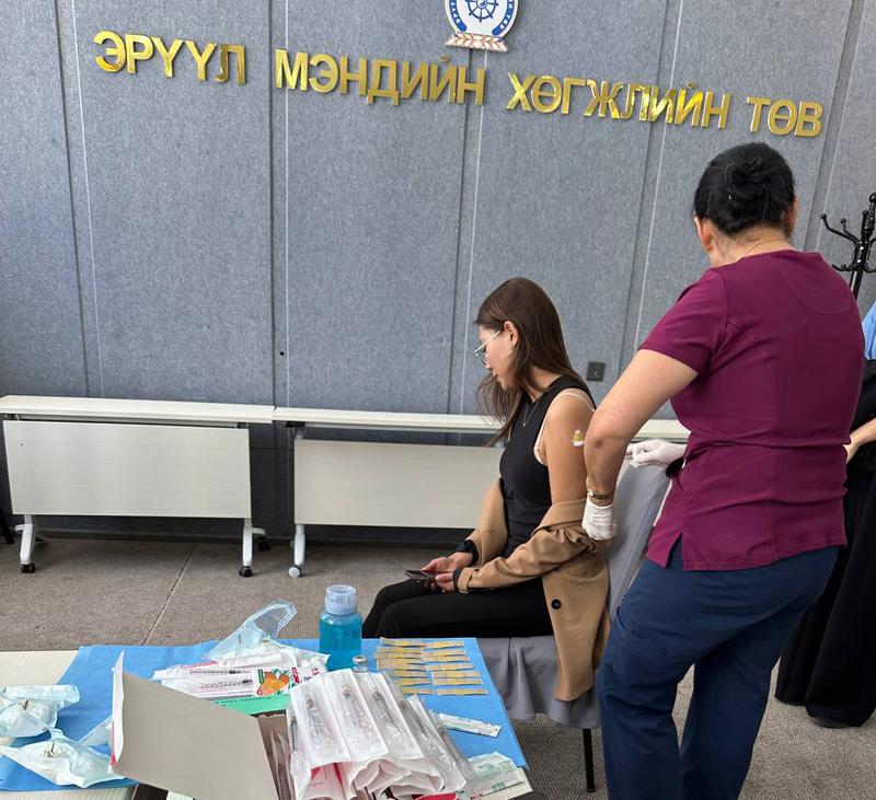 2023/11/13Төвийн нийт албан хаагчид болон цаг товлох үйлчилгээний ажилтнуудыг улирлын томуугийн эсрэг БНСУ-д үйлдвэрлэсэн “GCFLU” дөрвөн цэнт вакцинд хамрууллаа. Ингэснээр А болон В хүрээний дөрвөн дэд хэв шинжээр үүсгэгдсэн томуугийн халдвараас урьдчилан сэргийлж байгаа юм.