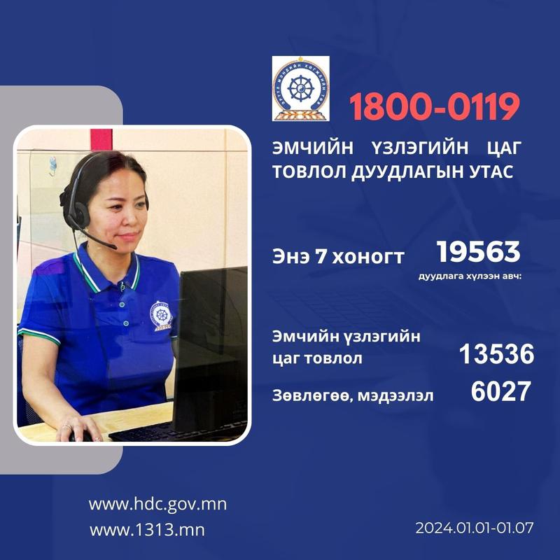 1800-0119 тусгай дугаарын "Эмчийн үзлэгийн цаг захиалга"-ын дуудлагын утасны 7 хоногийн мэдээ
