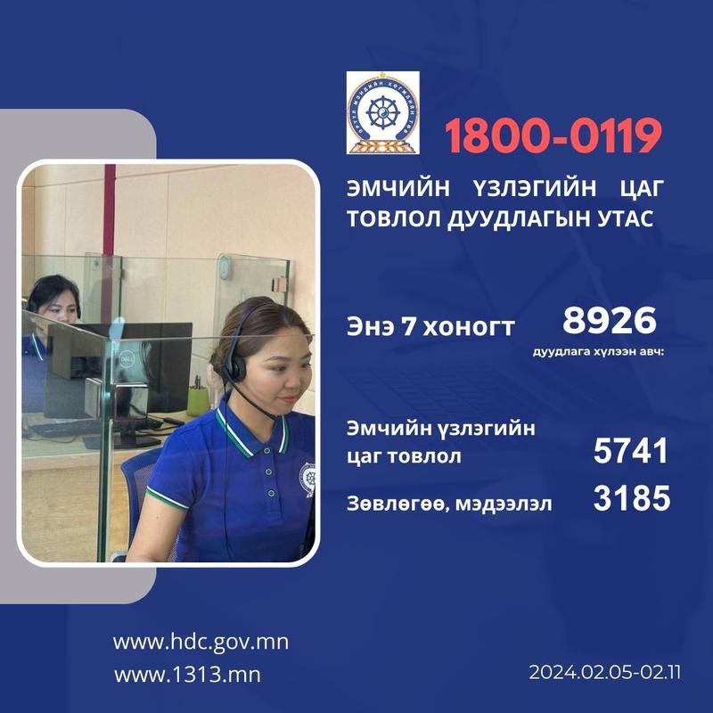 1800-0119 тусгай дугаарын "Эмчийн үзлэгийн цаг захиалга"-ын дуудлагын утасны 7 хоногийн мэдээ