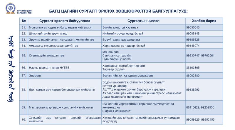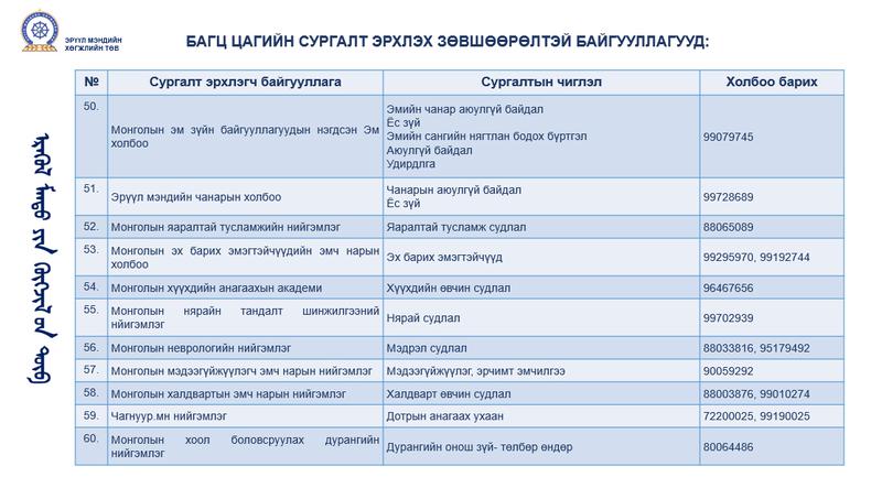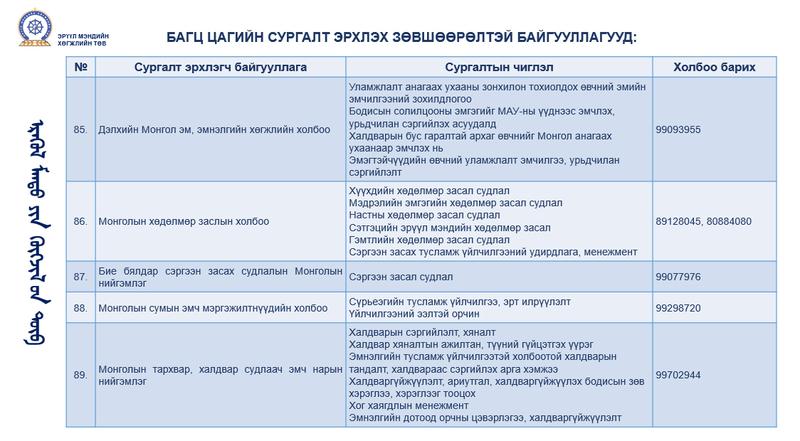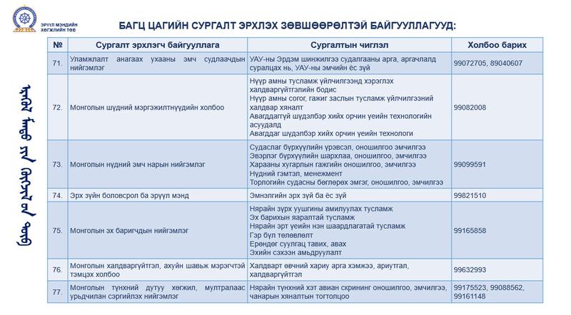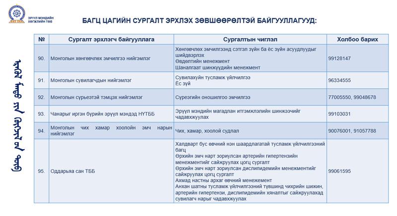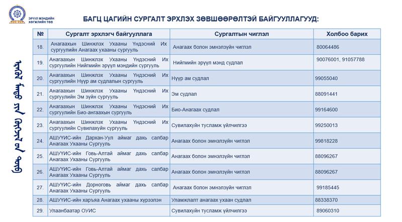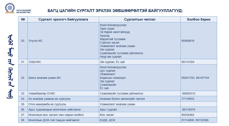 БАГЦ ЦАГИЙН СУРГАЛТ ЭРХЛЭХ ЗӨВШӨӨРӨЛТЭЙ БАЙГУУЛЛАГУУД