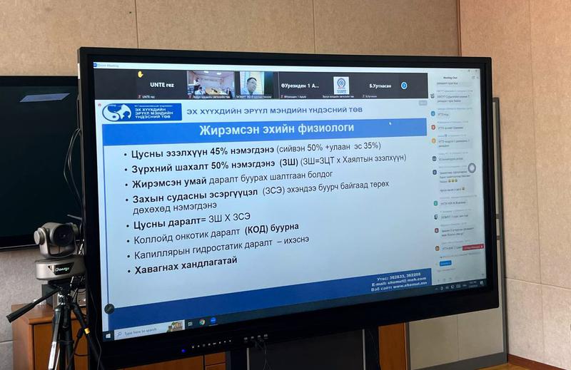 Уг ажлын хүрээнд тус төвөөс энэ сарын 28-ны өдөр үндсэн мэргэшлийн сургалтад хамрагдаж байгаа резидент эмч нарт “ӨНДӨРЖҮҮЛСЭН БЭЛЭН БАЙДЛЫН ХАРИУ АРГА ХЭМЖЭЭНИЙ ТУХАЙ” сэдэвт цахим сургалтыг зохион байгууллаа.