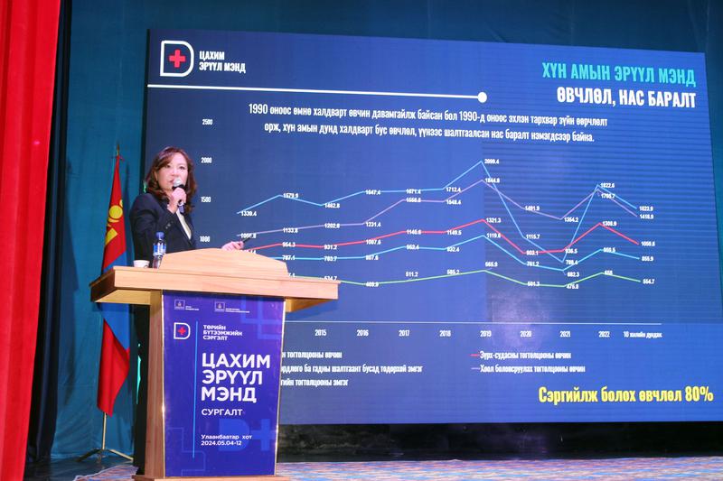 2024/05/08Налайх дүүргийн соёлын ордонд зохион байгуулсан уг сургалтад нийслэлийн алслагдсан Налайх, Багануур, Багахангай дүүргийн эмч, мэргэжилтнүүд, ЭМЯ, ЦХХХЯ, харьяа газруудын төлөөлөл 250 орчим хүн оролцлоо.