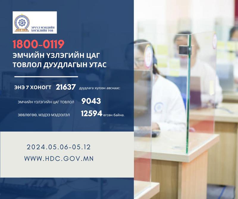 1800-0119 тусгай дугаарын "Эмчийн үзлэгийн цаг захиалга"-ын дуудлагын утасны 7 хоногийн мэдээ