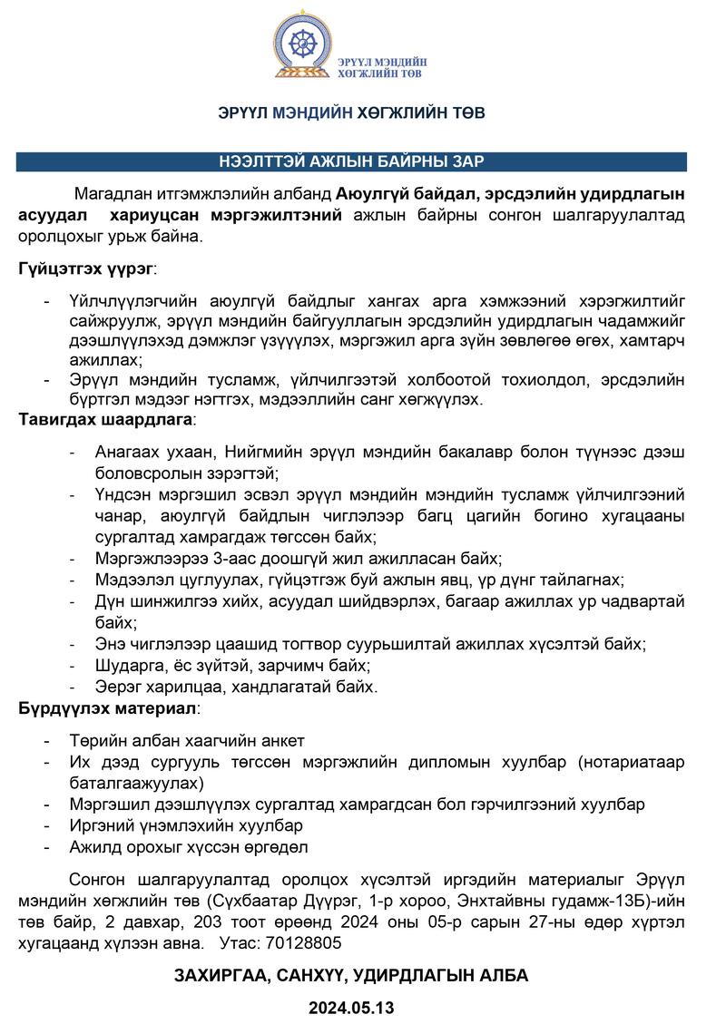 - МЭРГЭЖЛИЙН ҮЙЛ АЖИЛЛАГАА ЭРХЛЭХ ЗӨВШӨӨРЛИЙН ШАЛГАЛТЫН БҮРТГЭЛ 2027/01/01