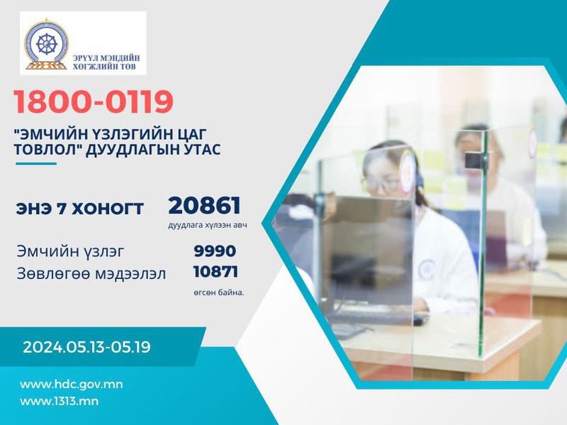 1800-0119 тусгай дугаарын "Эмчийн үзлэгийн цаг захиалга"-ын дуудлагын утасны 7 хоногийн мэдээ