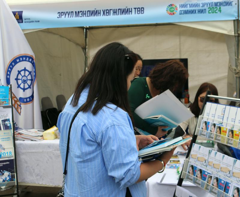 2024/05/22"Нийгмийн эрүүл мэндийг дэмжих жил 2024" өдөрлөгт Эрүүл мэндийн хөгжлийн төв оролцож байгууллагын үйл ажиллагаа, цахимжилтийн талаар танилцуулж байна.