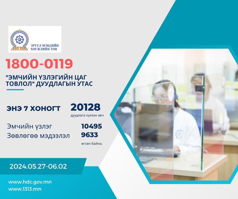 1800-0119 тусгай дугаарын "Эмчийн үзлэгийн цаг захиалга"-ын дуудлагын утасны 7 хоногийн мэдээ