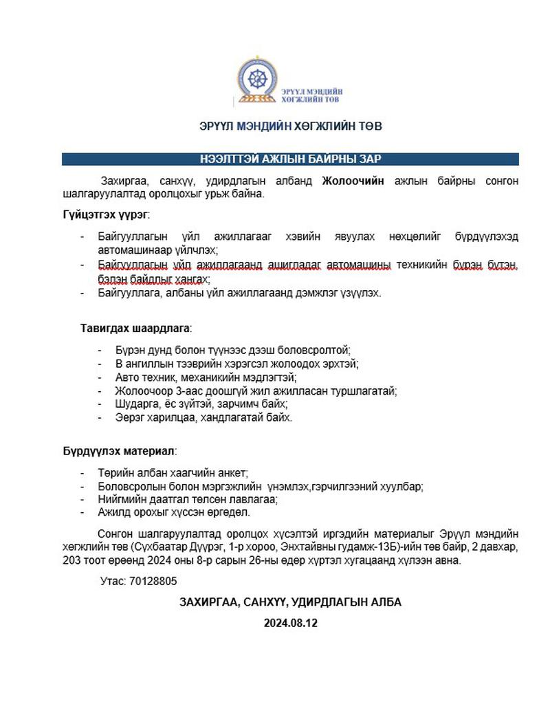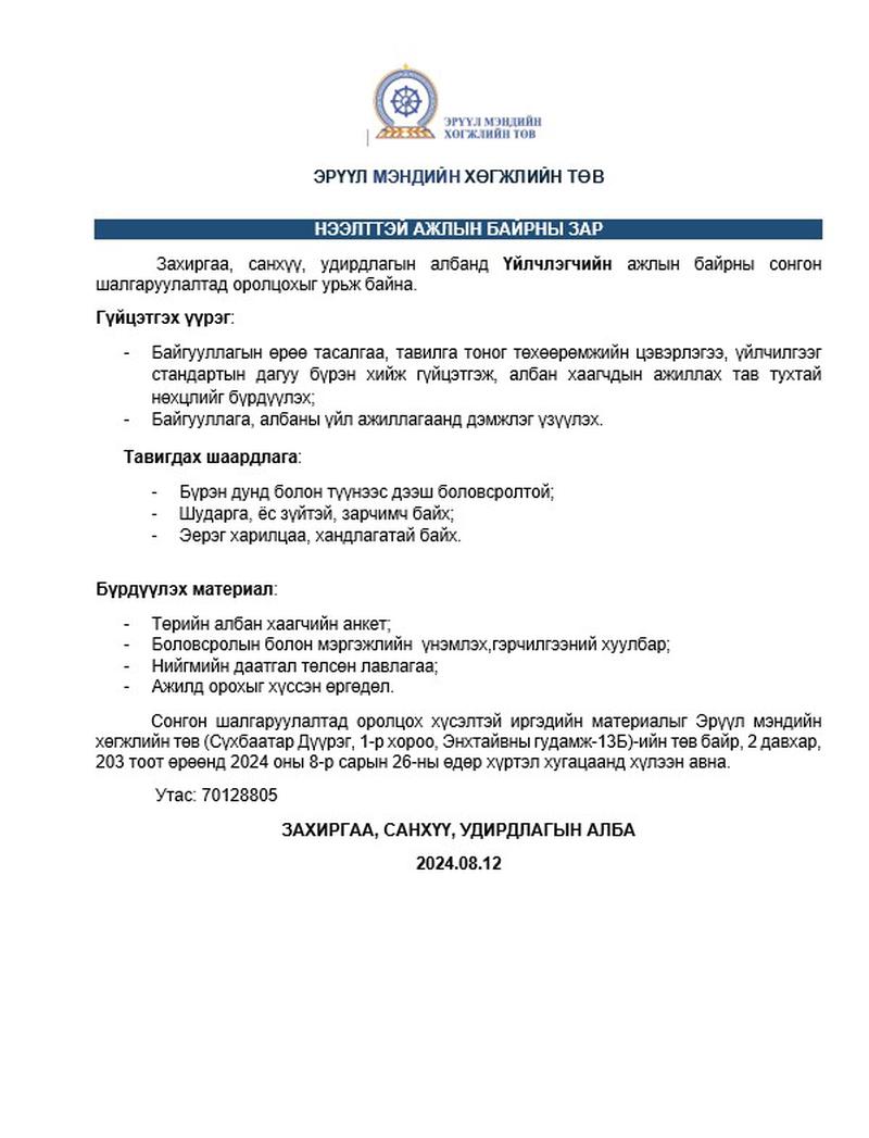 - Сул ажлын байр зуучлал 2023/08/29