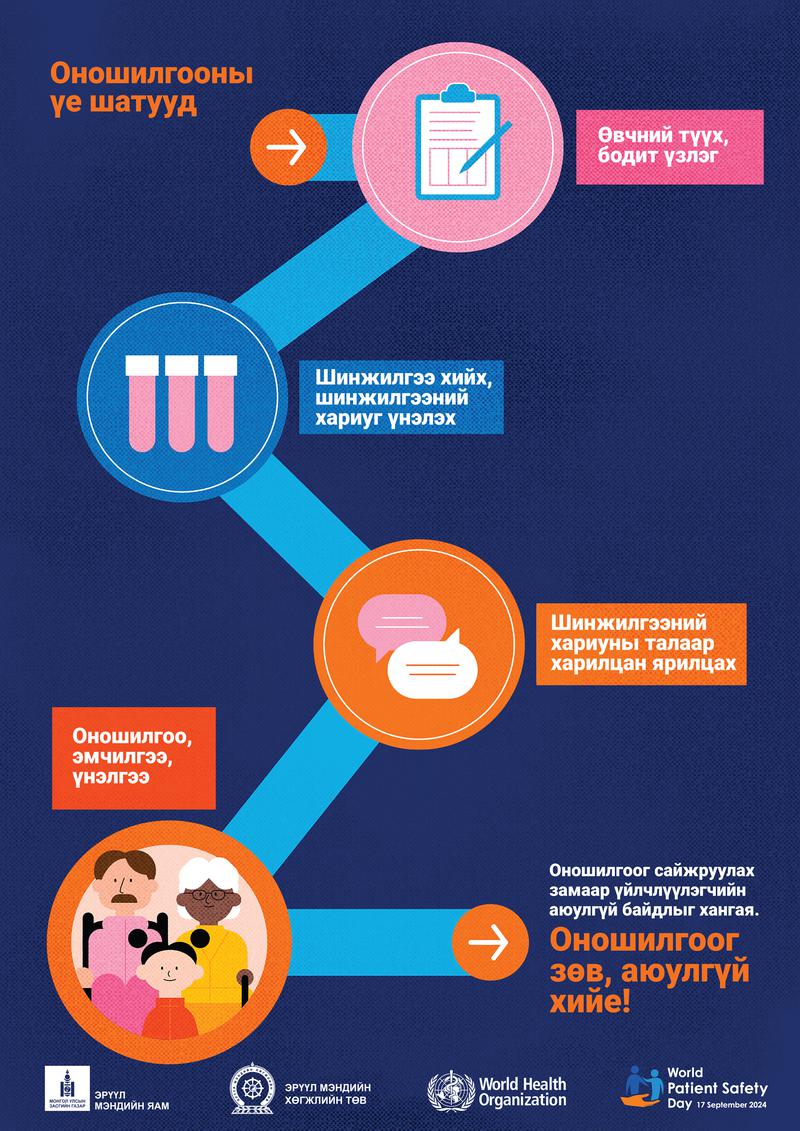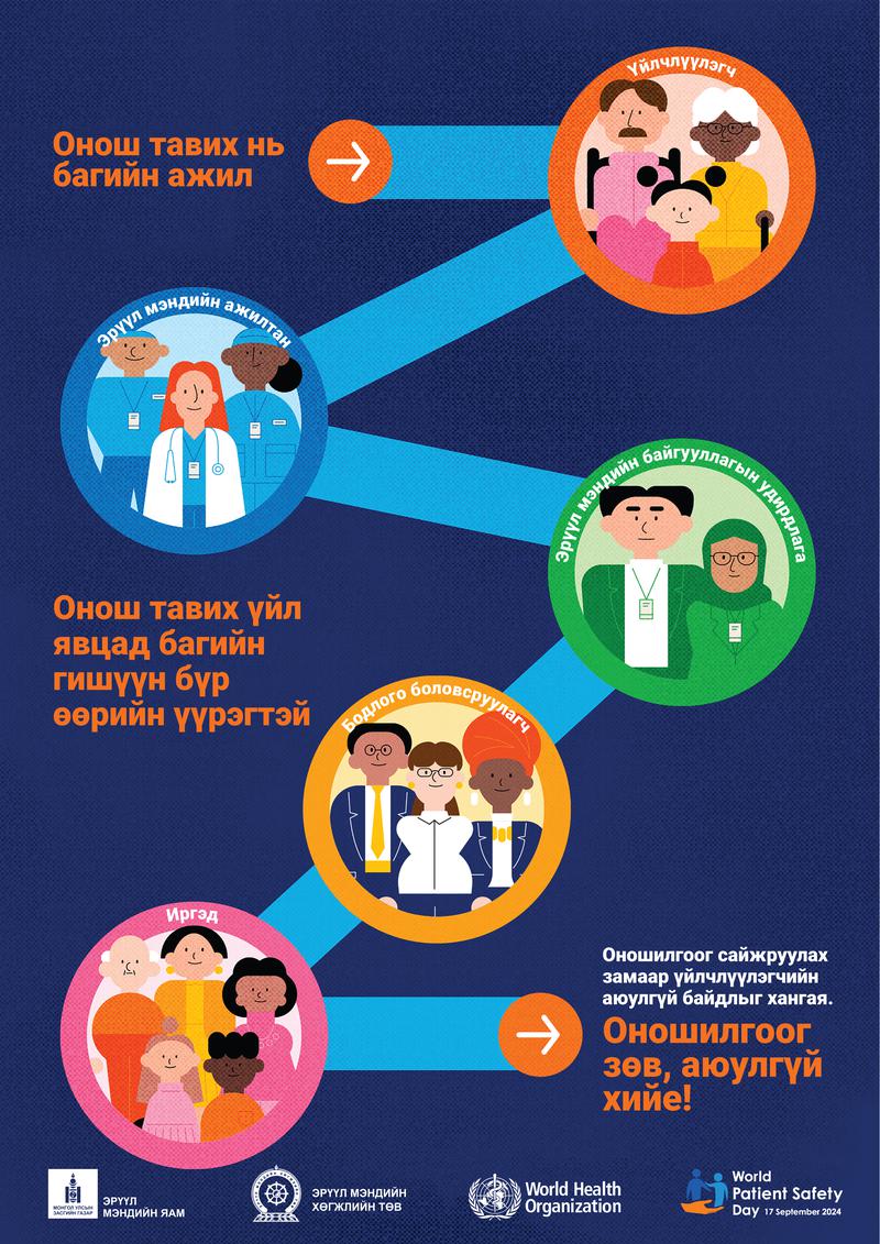 ДЭМБ-ын зүгээс тусламж, үйлчилгээний аюулгүй байдлыг хангахад үйлчлүүлэгчийг цаг алдалгүй, зөв оношлох нь нэн чухал болохыг онцолж, 2024 оны Дэлхийн үйлчлүүлэгчийн аюулгүй байдлын өдрийг “Оношилгоог зөв, аюулгүй хийе!” уриан дор тэмдэглэн өнгөрүүлж байна.