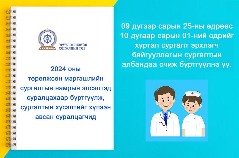 2024 оны төрөлжсөн мэргэшлийн сургалтын намрын элсэлтэд суралцахаар бүртгүүлж, сургалтын хүсэлтийг хүлээн авсан суралцагчид