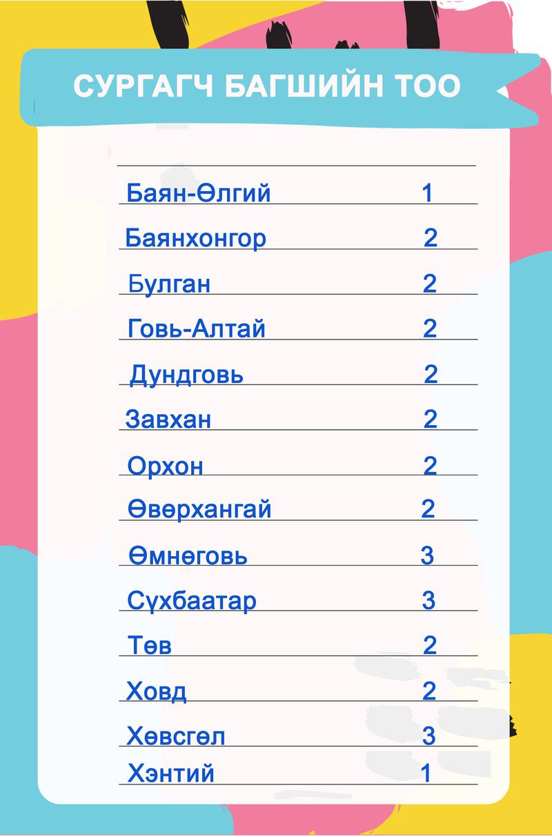 Одоогоор 15 аймагт сургалт зохион байгуулаад байгаа бөгөөд үлдсэн аймгуудад энэ оны 9-10 дугаар саруудад сургалтууд зохион байгуулж дуусах юм.