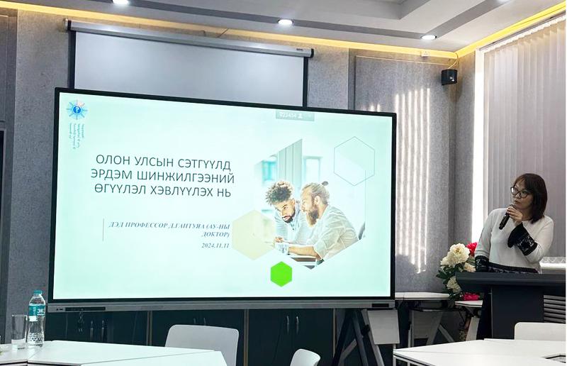 2024/11/12Тус төвийн албан хаагчдад Анагаах ухааны доктор, дэд профессор Д.Гантуяа нь “Олон улсын сэтгүүлд Эрдэм шинжилгээний өгүүлэл хэвлүүлэх нь” сэдвээр 2024 оны 11 сарын 12-ны өдөр сургалт зохион байгууллаа.