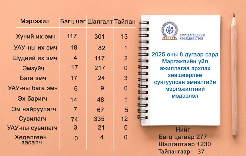 2025 оны 8 дугаар сард Мэргэжлийн үйл ажиллагаа эрхлэх зөвшөөрлөө сунгуулсан эмнэлгийн мэргэжилтний мэдээлэл