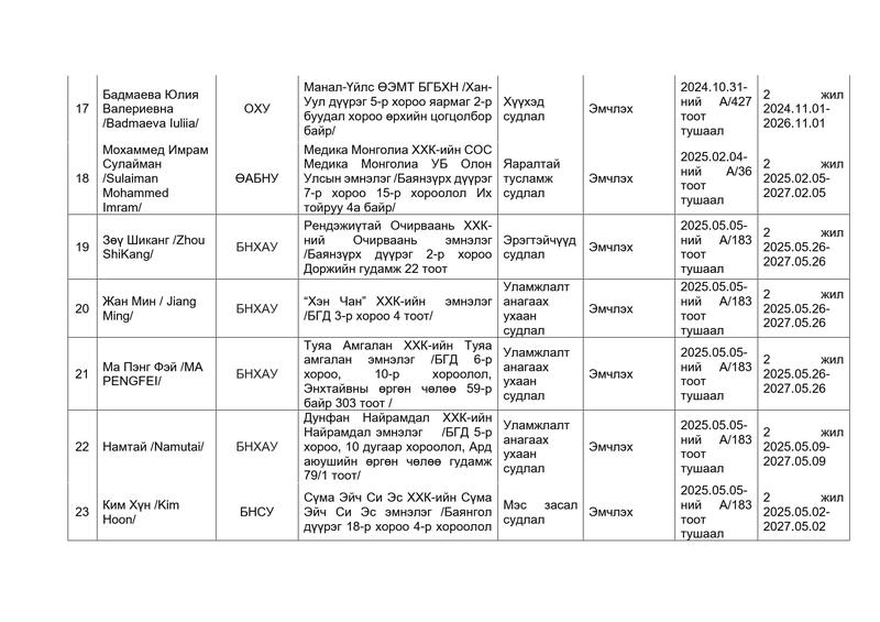 МОНГОЛ УЛСАД МЭРГЭЖЛИЙН ҮЙЛ АЖИЛЛАГАА ЭРХЛЭХ ЗӨВШӨӨРӨЛ ОЛГОГДСОН ГАДААДЫН ЭМНЭЛГИЙН МЭРГЭЖИЛТНИЙ МЭДЭЭЛЭЛ