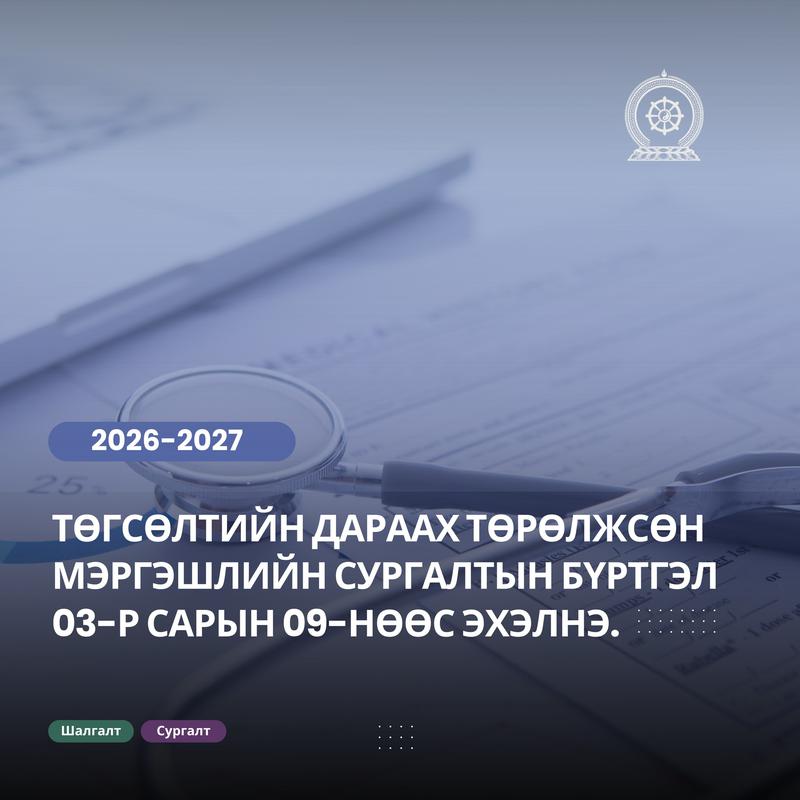 Төгсөлтийн дараах төрөлжсөн мэргэшлийн сургалтын бүртгэл 03-р сарын 09-нөөс эхэлнэ
