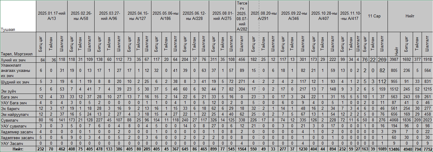 Мэргэжлийн үйл ажиллагаа эрхлэх зөвшөөрөл сунгасан эмнэлгийн мэргэжилтний мэдээлэл - 2025 оны 1 дүгээр сар