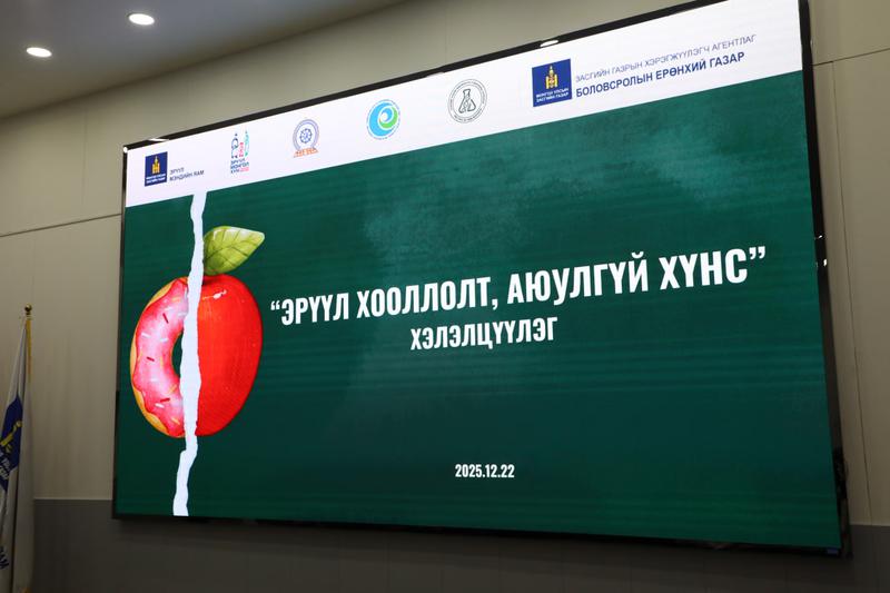 2025/12/22Монгол Улсын Ерөнхийлөгчийн 2022 оны 43 дугаар зарлиг, “Эрүүл Монгол хүн” үндэсний хөдөлгөөнийг хэрэгжүүлэх ажлын хүрээнд “Эрүүл хооллолт, аюулгүй хүнс” сэдэвт хэлэлцүүлгийг 2025 оны 12 дугаар сарын 22-ны өдөр зохион байгууллаа.