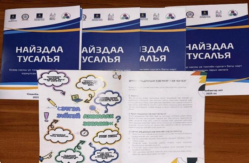 Сургалтын хүрээнд өсвөр насныханд зориулсан, мэргэжлийн үг хэллэг багатай, зураг, схемд тулгуурласан “Найздаа туслая” нэртэй гарын авлагыг 14 сэдвийн хүрээнд боловсруулж, 1000 хувь хэвлэн сургалтад ашигласан байна.